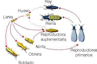 El desarrollo de las termitas es el de metamorfosis gradual, pasan por la etapa de huevo, varios estados ninfales, hasta obtenerse cuatro castas: